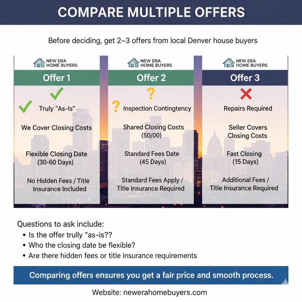 Before accepting an offer, it’s smart to get quotes from at least two or three local Denver cash buyers.